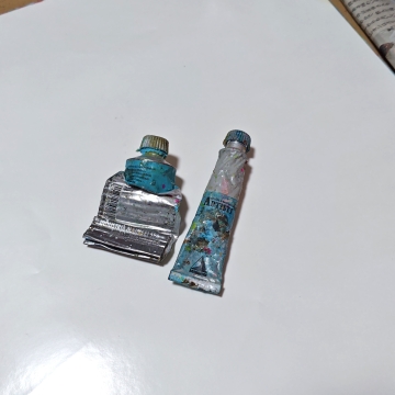 頂き物の絵の具等で普段使わないような絵の具は、よく下地で使います。メーカーが違うようだけど同じ色だと...